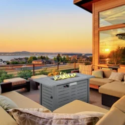 Outsunny 36″ Firepit Table For Outside, 50,000 BTU Large Rectangular Stone Gas Firepit With Lava Rocks & Rain Cover, Fits 20lb Tank, Gray