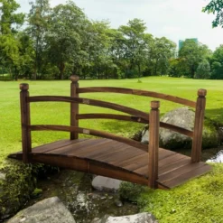 Outsunny 4.7′ Garden Bridge, Arc Wood Footbridge, Decorative Pond Bridge With Side Rails