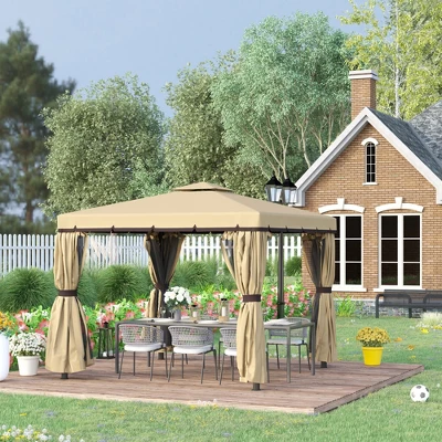 Take in the summer with Outsunny’s 10×10 gazebos for patios. The aluminum frame is easy-to-carry and water-safe, so movement and storage are quick and easy. Block UV but keep the breeze with its stylish 2 tier canopy. Is the glare still too much to bear? Use the four zip-on mesh nettings and curtain sidewalls to master the elements and avoid winged fiends. Featuring support stakes and anchor bolts to mount it to any surface, an outdoor canopy gazebo’s got you covered just about anywhere.