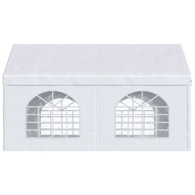 - Cathedral-Style Canopy: Four cathedral-style windows let you enjoy natural light with protection from the wind. Open the two zipper doors for quick entry or to simply enjoy the breeze. On hot days, the sidewalls can be taken off to keep this wedding tent as cool as possible.