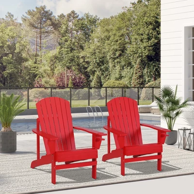 - Rustic Wooden Flair: This modern two-piece Adirondack chair set brings classic wood flair to outdoor spaces anywhere. By the bonfire placed on the porch or put out by the poolside, it offers stylish seating and stronger support with seven slats for your back.