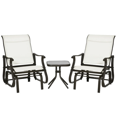 Outsunny 3-Piece Outdoor Gliders Set Bistro Set With Steel Frame, Tempered Glass Top Table For Patio, Garden, Backyard, Lawn