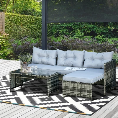 Outsunny 3-Piece Wicker Patio Furniture Sets, Rattan Conversation Sets, Sectional Sofa Set With Cushioned Lounge Chaise For Garden Poolside Or Porch Lounging