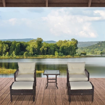 Outsunny 5-Piece Wicker Patio Armchair Set With Ottoman, Outdoor PE Rattan Furniture Set With Comfortable Zippered Cushions & Weather-Fighting Build