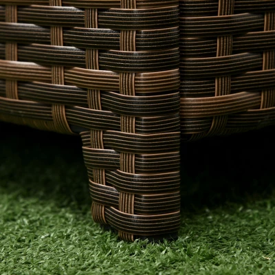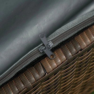 Outsunny Patio Wicker Storage Bench, Cushioned Outdoor PE Rattan Patio Furniture, Assisted Easy Open, Two-In-One Seat Box With Handles Seat, Red