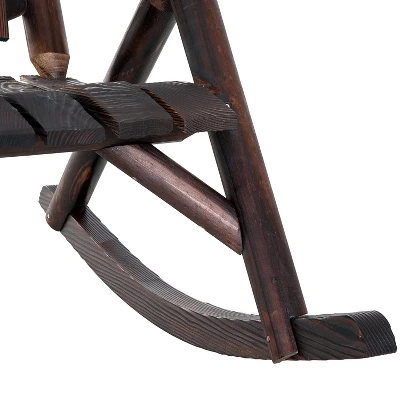 Outsunny Wooden Rustic Rocking Chair, Indoor Outdoor Adirondack Log Rocker With Slatted Design For Patio, Lawn